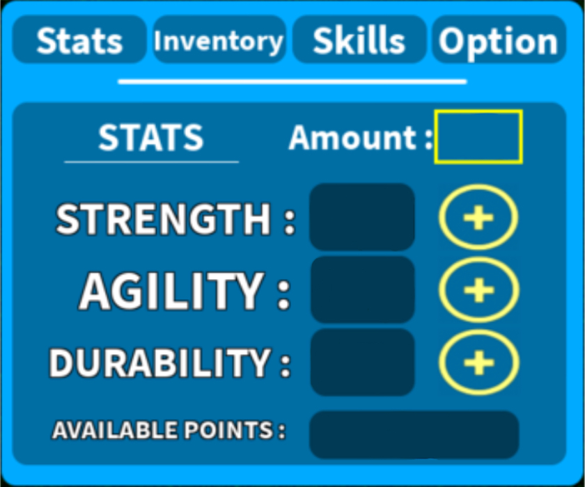 Stat points are the power upgrading system in Boku no Roblox. It is where you can apply your stat points to one of the 3 stats you'd like to improve. You earn 3 stat points each time you level up until you reach level 15,000, which is the maximum level. There is also a text box in the top right corner of the stats tab, where you can type in how many stat points will be added every time you click the plus sign.